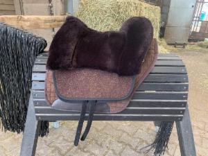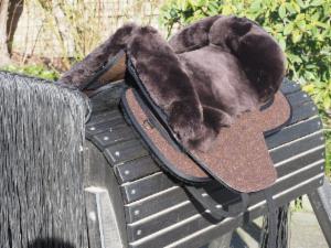 Grandeur Fellsattel "Tomentum Endurance", Basisfarbe: braun, Fellfarbe: mocca, optional mit Adapter für Bügelaufhängung von Barefoot